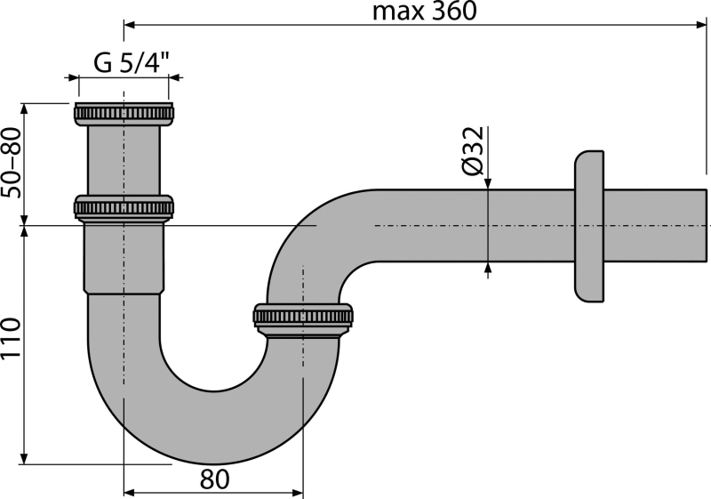 Sifon umyvadlový „U“ DN32 s převlečnou maticí 5/4", kov