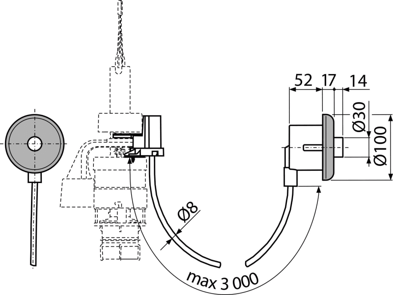 - Hadička 3 m pro propojení tlačítka a vypouštěcího ventilu