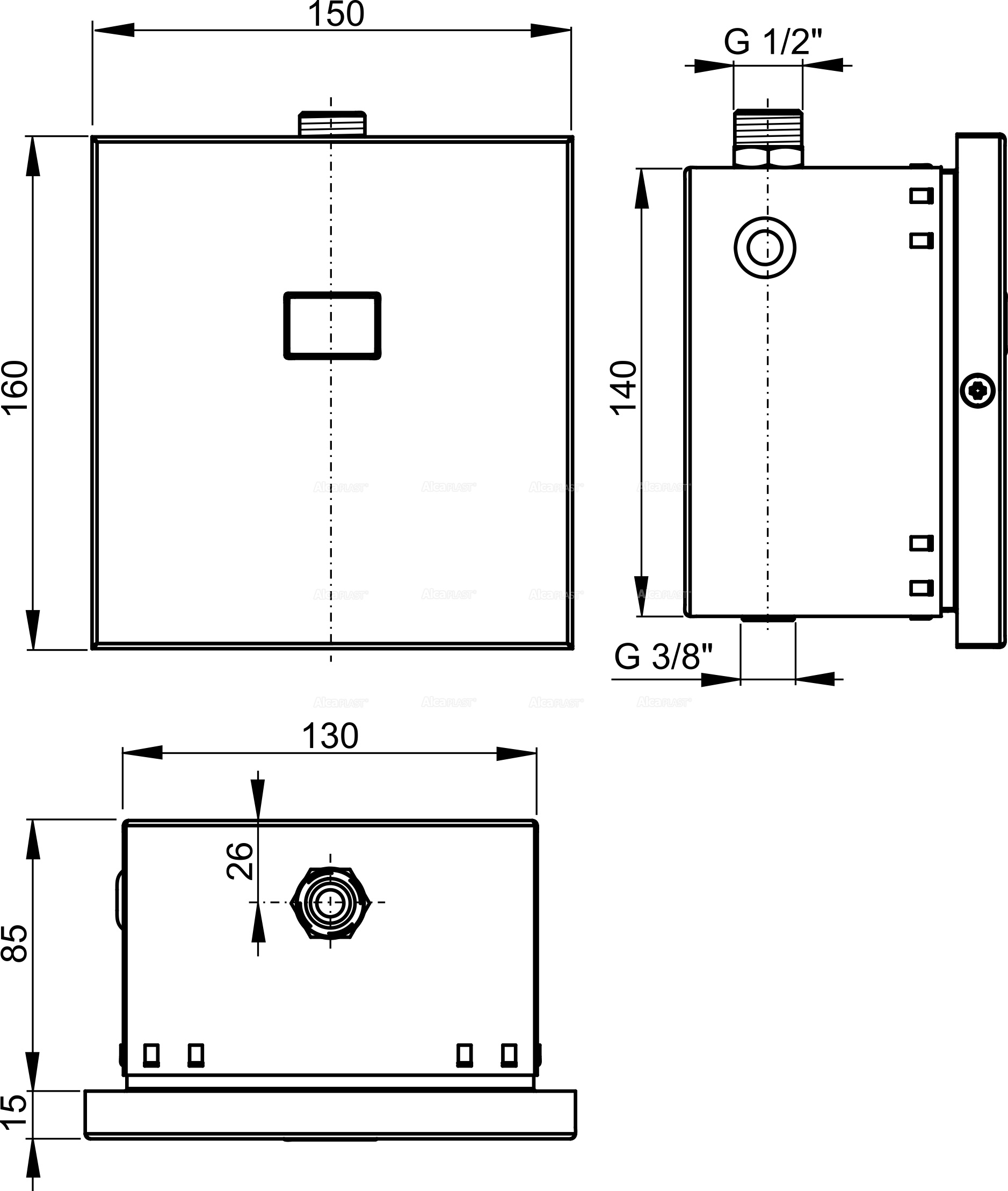 - Nastavitelné parametry: čas začátku a konce registrace, délka spláchnutí, automatické spláchnutí, povolení zavodnění, čas zavodnění, variabilní nastavení hygienického oplachu