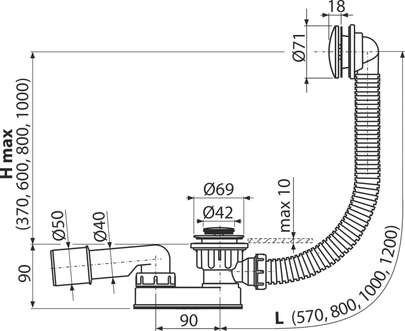 • Zápachová uzávěra z polypropylenu, tepelně a chemicky odolná
