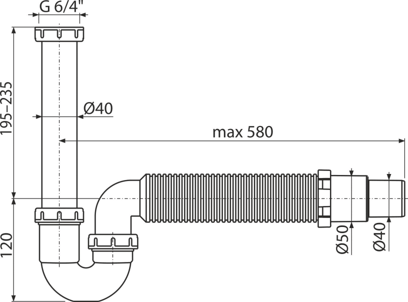 - Napojení na odpadní trubku Ø40 mm nebo Ø50 mm