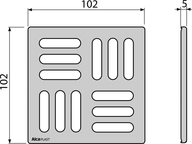 - Pro podlahové vpusti s rozměrem rámečku 105×105 mm