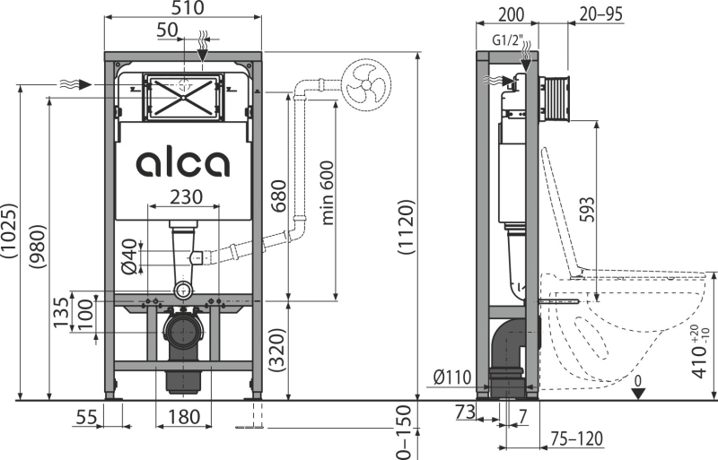 Univerzální instalační modul pro závěsné WC určený k montáži do sádrokartonové konstrukce. Díky integrované podložce umožňuje rychlou instalaci bez dalších výztuží. Modul nabízí výškově nastavitelné nohy, posuvný držák odpadu, dávkovač WC tablet i přípravu pro senzorové splachování. Nádržka s izolací zabraňuje rosení a tlumí hluk. Kompatibilní se všemi tlačítky Alca.