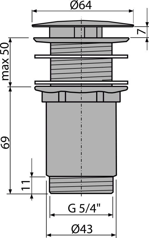 Výpust umyvadlová 5/4" celokovová, velká neuzavíratelná zátka, pro umyvadla bez přepadu