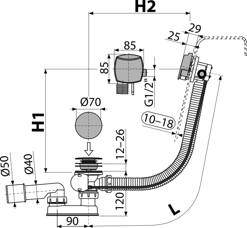 - Pro vany s odtokovým otvorem Ø52 mm