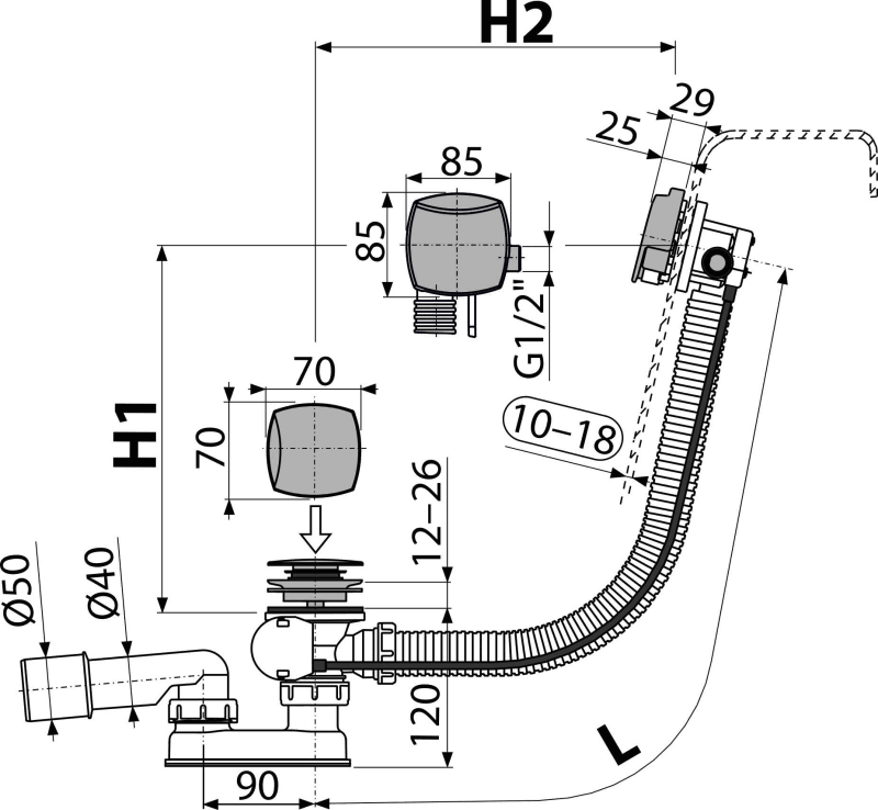 - Boční G1/2" šroubení pro přívod předem namixované vody