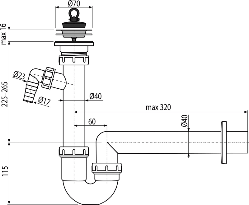 Sifon trubkový s nerezovou mřížkou DN70 a přípojkou