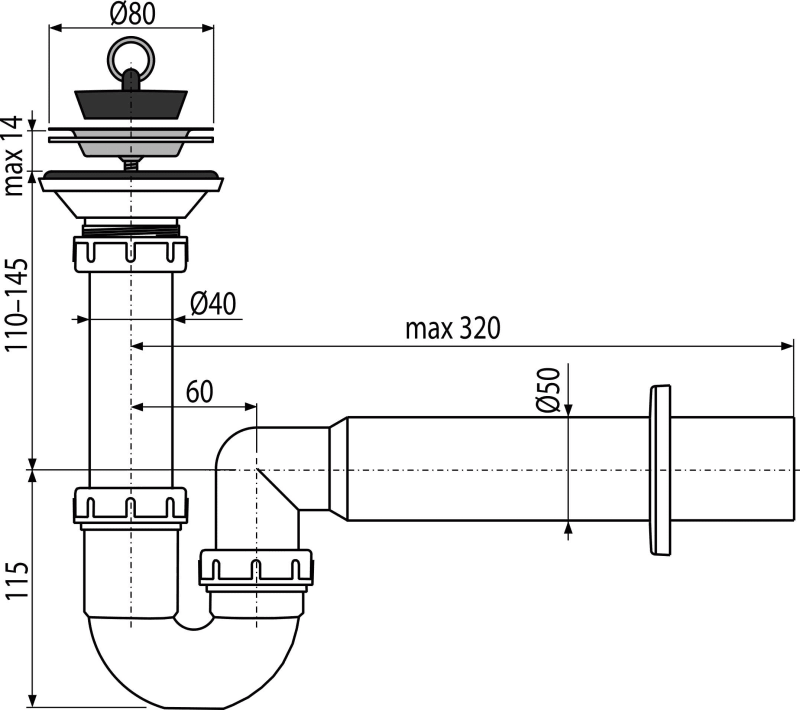 | A35 | Výpust dřezová 6/4" s mřížkou DN80 |