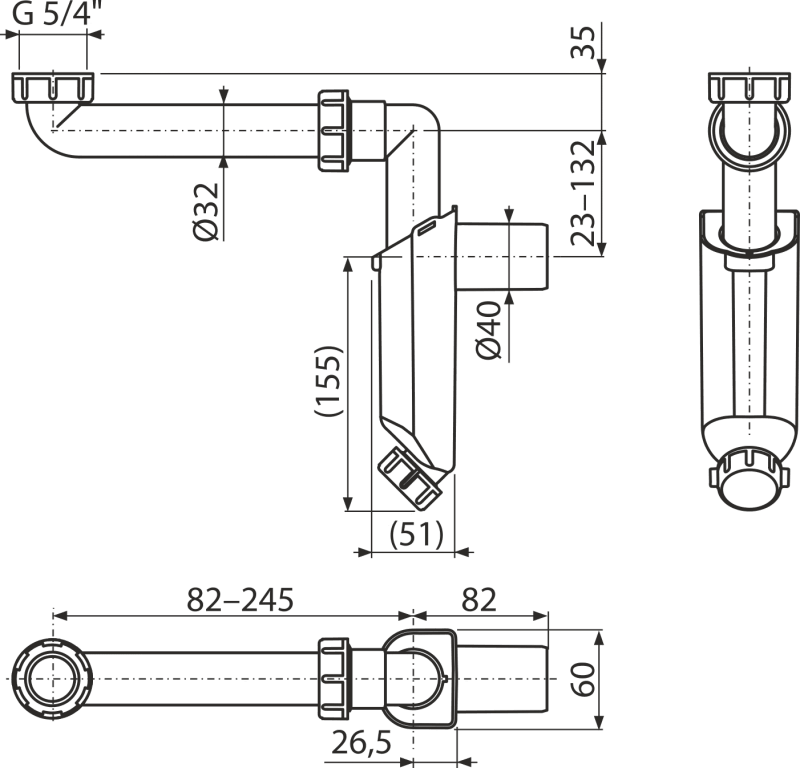 - Napojení na odpadní trubku Ø40 mm