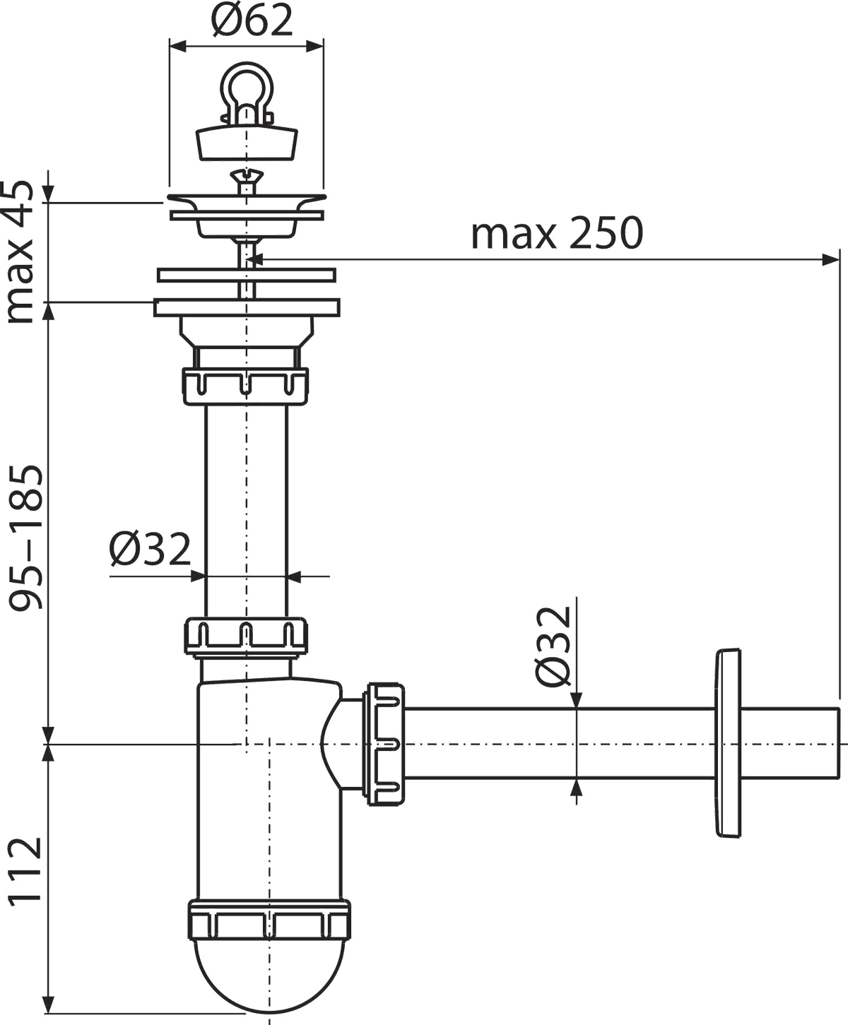 Sifon umyvadlový DN32 s nerezovou mřížkou DN63