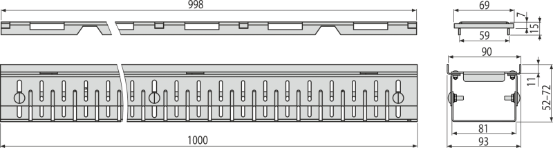 - Výškově nastavitelné tělo žlabu 60–80 mm