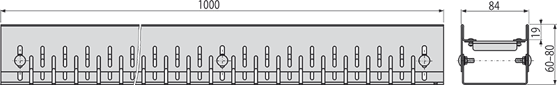 - Výškově nastavitelné tělo žlabu 60–80 mm
