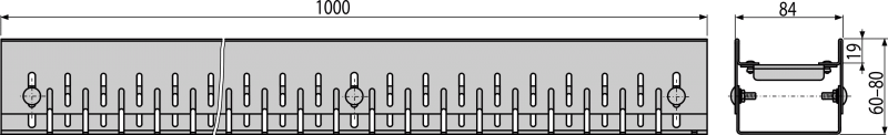 - Výškově nastavitelné tělo žlabu 60–80 mm
