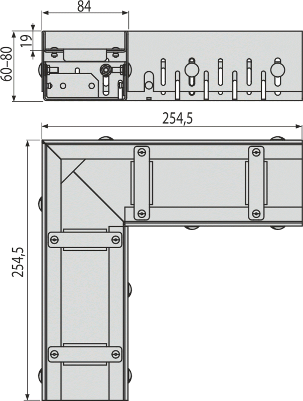 - Výškově nastavitelné tělo žlabu 60–80 mm