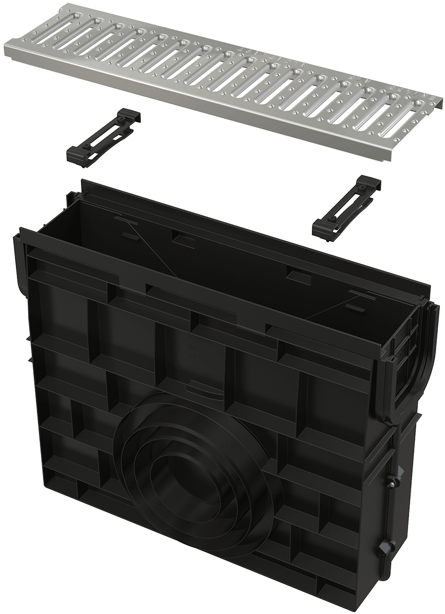 Venkovní žlabová vpust pro AVZ102 s plastovým rámem a pozinkovaným roštem „C“ profilu A15